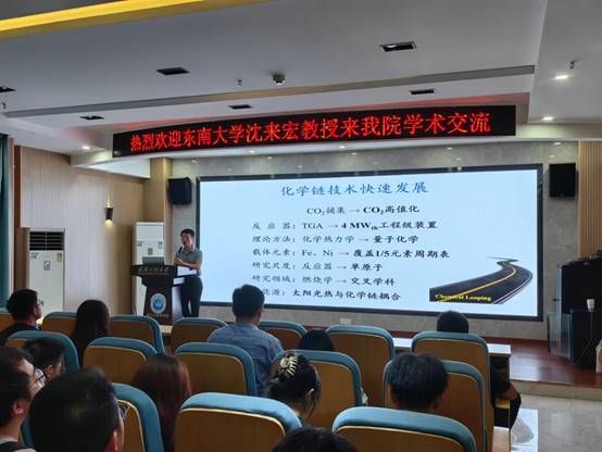报告会上,沈来宏教授首先分享了他在化学链研究领域20余年来的经验和感悟,从化学链燃烧和气化的基本原理、及其所涉及的关键科学问题着手,重点介绍了载氧体设计和微型流化床、流化床-TG、原位热反应显微装置等反应器的最新研究进展,探讨了不同载氧体的氧传递过程的反应机理,展望了化学链技术在气化、热解,制氨、制氢、制氧、储能等能源化工领域的拓展和延伸。报告结束后,在场师生与沈来宏教授进行了深入交流和热烈讨论。