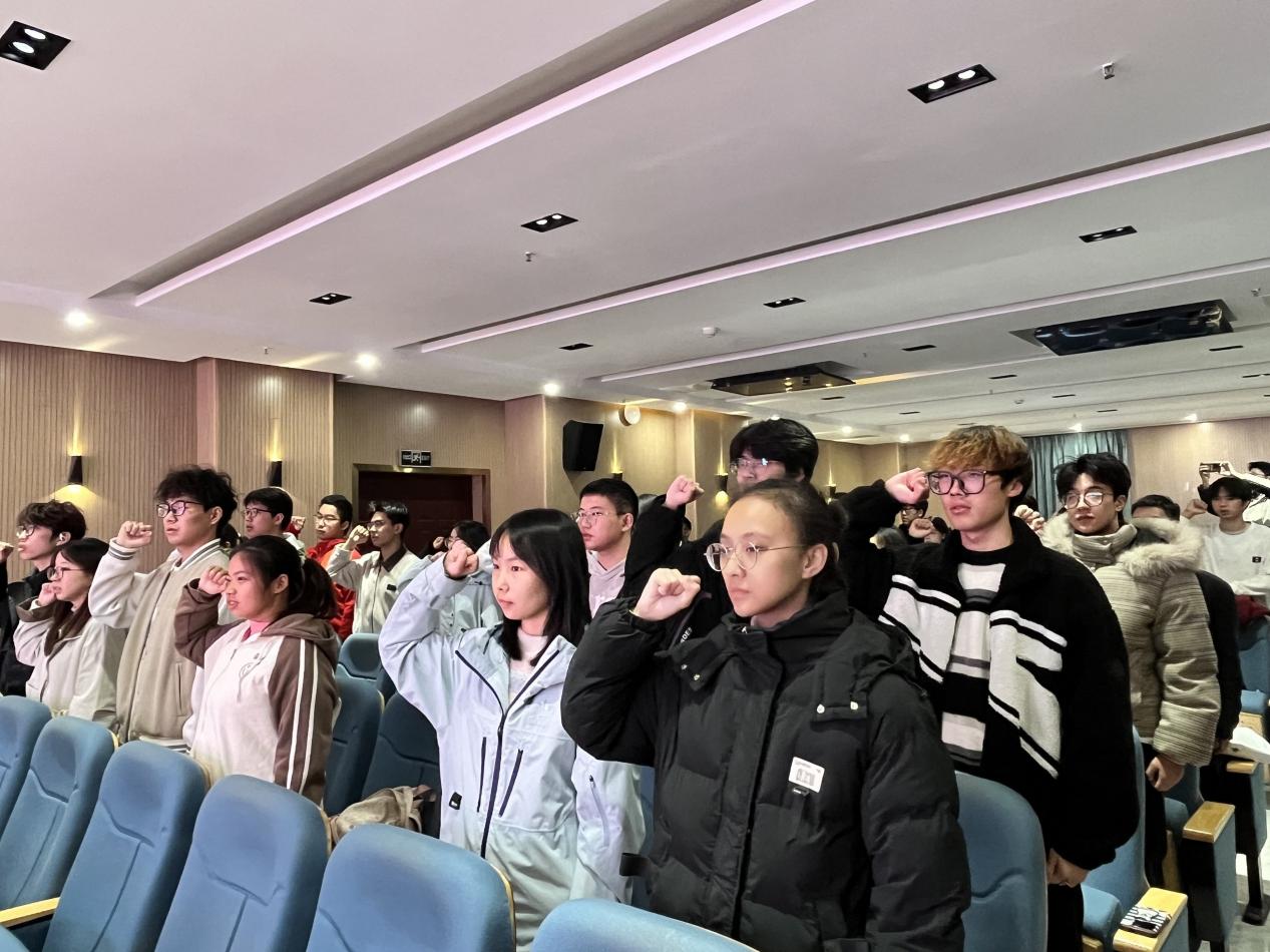 活动在全体人员齐唱国歌中拉开序幕,激昂的旋律凝聚起浓厚的爱国情怀与集体认同。由本科化工第三党支部书记张锦领誓,全体党员面向党旗,重温入党誓词。铿锵誓言回荡在会场,进一步坚定了党员的初心使命与理想信念。