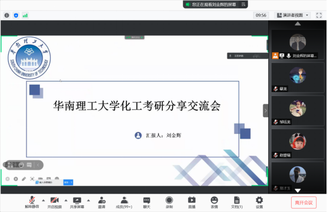 此次交流会通过腾讯会议开展,邀请了9位考取华南理工大学的学长学姐进行经验分享。交流会上,优秀考研代表们以自己的切身经历向同学们介绍自己的考研心得,从读研的必要性、备考的计划性进行了详细的讲解,分享了各科的复习方法、考研计划、信心的树立、心态的调整,以及有关选择专业方向和复试等方面的一些心得。