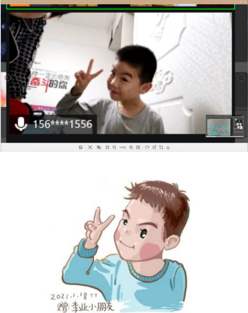 “我由衷地希望我们两个的遇见会成为彼此的幸运,也非常希望活动结束后,小朋友会记得曾经有一个大一的小老师从他的世界路过”,六十个小时线上课程结束后,来自20级工商管理班的志愿者张晓芳在空间写下这样的感言,“其实我本来已经做好可能遇到家长和小朋友不积极配合的准备,但实际上家长和小朋友都特别友好特别配合,这也给了我更大的信心和动力去帮助小朋友更好地成长”。