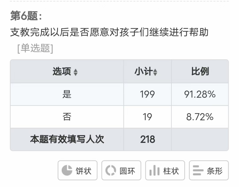 “许愿计划”第二期即将结束之时,许志伟志愿服务队面向全体志愿者发出了一封调查问卷,结果显示超过90%的志愿者表示会在计划结束后继续自愿线上支教。