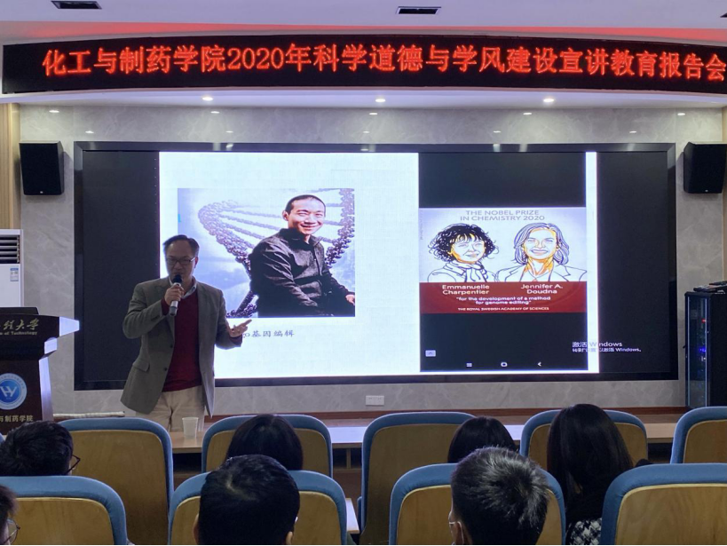 本网讯(通讯员 周雅琪)为深入学习贯彻习近平总书记关于科学道德和科研诚信建设重要指示精神,贯彻落实《关于进一步加强科研诚信建设的若干意见》《关于进一步弘扬科学家精神加强作风和学风建设的意见》,12月12日,电影天堂 在大化工楼610报告厅举办科学道德和学风建设宣讲教育专题报告会,学院副院长龙思会作专题报告。导师代表、研究生辅导员及100余名研究生参会。