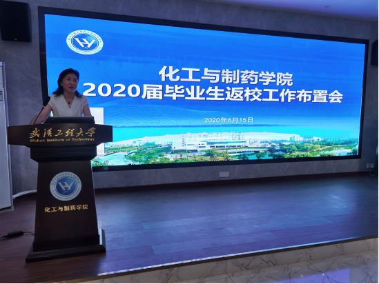 在化工大楼多功能报告厅召开2020届毕业生返校工作布置会。学院党委书记王雪梅、院长汪铁林,副院长龙思会、金放,各系(中心)主任、导师、班主任,全体辅导员以及一帮一教师志愿者参加会议,会议由党委副书记周丹主持。