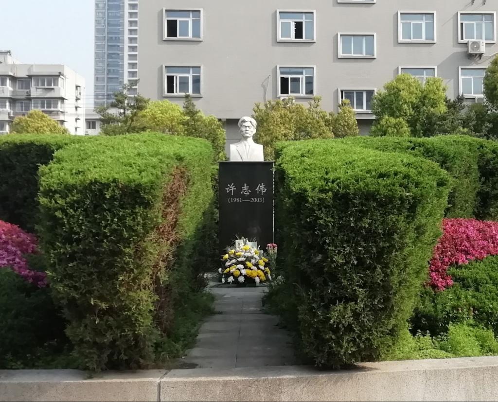 活动最后,各位同学迈着沉重的步伐,怀着崇敬的心情,走向许志伟学长墓前,为英雄墓敬献鲜花。