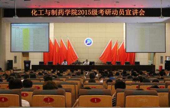 在流芳校区四教多功能报告厅举行了2015级考研动员宣讲会。化工专业姜兴茂教授,学院党委副书记田勇、副院长刘生鹏,研究生处肖平老师以及2015级全体学生参加了会议。