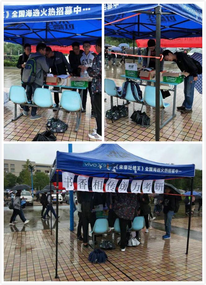 流芳校区大礼堂前和教辅中快食堂门口开展了为期两天的免费赠书活动,免费发放考研书籍100余本。