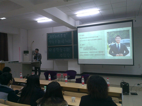 2014“化药菁英”学生干部培训班第三讲在流芳校区L3119教室举行。湖北省学生联合会驻会执行主席、武汉大学第33届学生会主席胡可夫和电影天堂