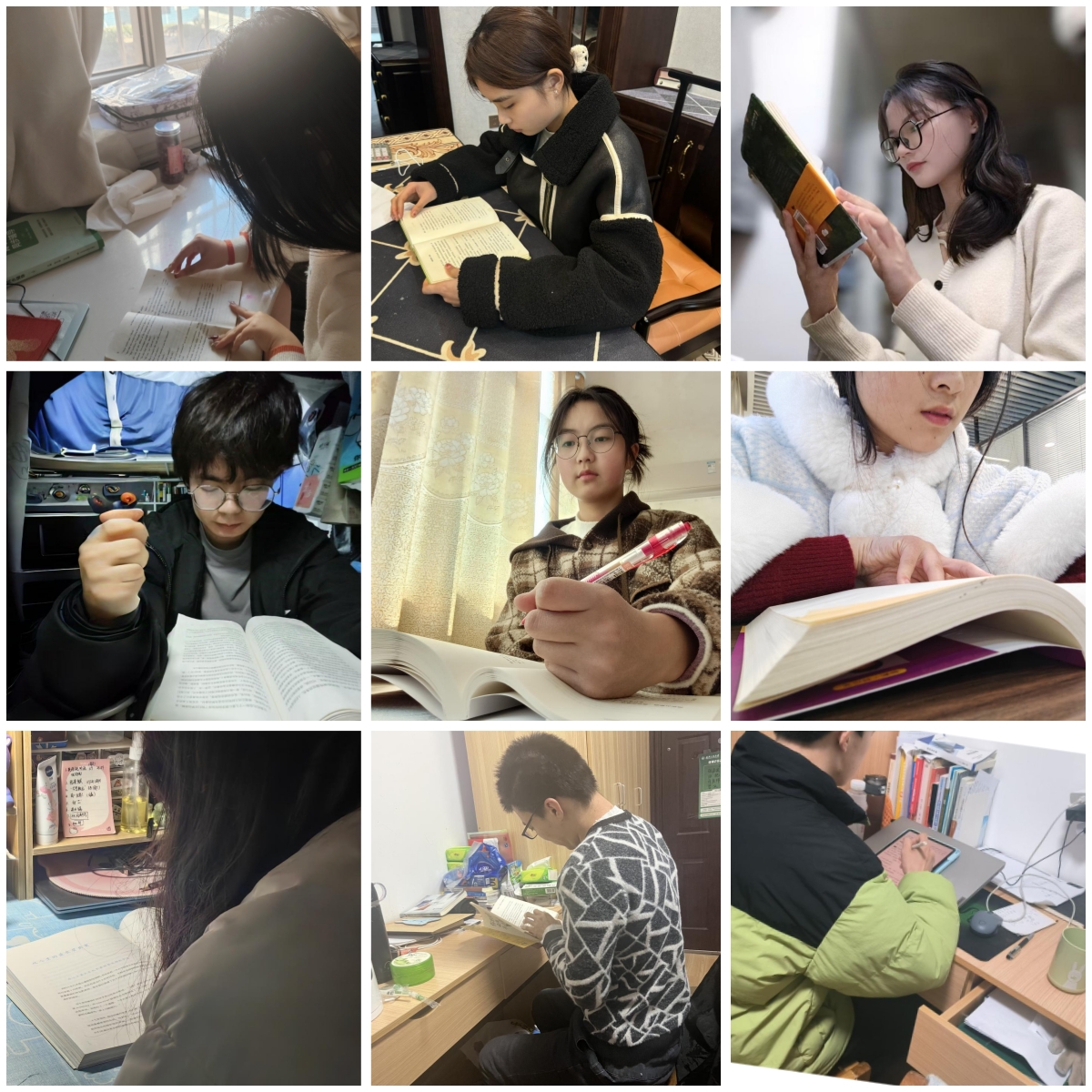 工大师生手捧书本,沉浸在知识的海洋。无论是温暖的午后,还是静谧的夜晚,都能看到他们专注阅读的身影。有的同学坐在洒满阳光的窗边,让温暖的阳光与书中的智慧一同照亮心田;有的同学在安静的书房,伴着轻柔的音乐,走进书的世界。