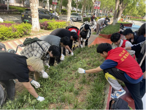 组织许志伟志愿服务队和30名学生代表,在后勤保障处物业管理中心指导下,开展了春日除草劳动教育实践课。