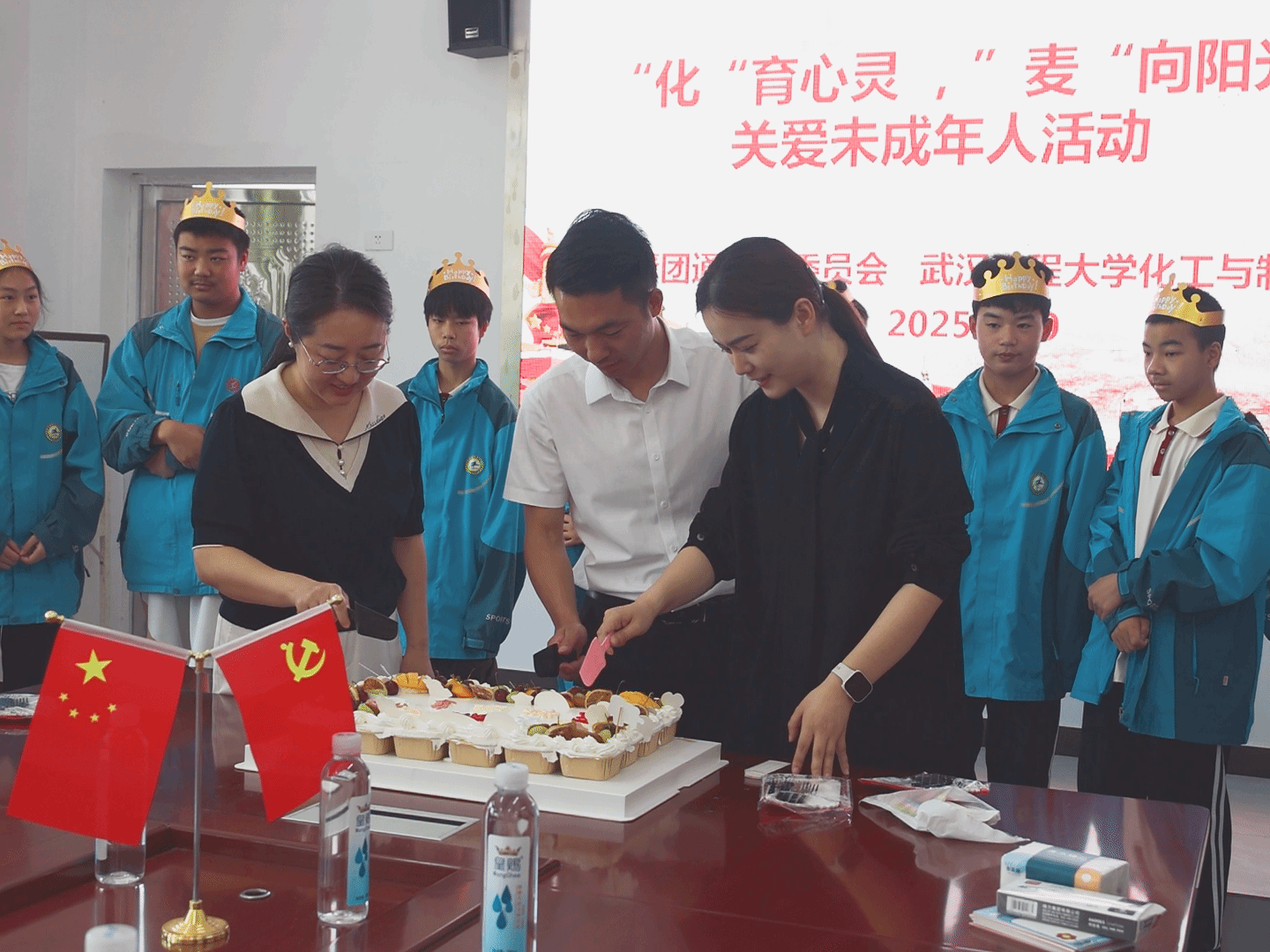 在捐赠仪式环节,周丹代表学院向麦市中学转交了由学院全体学生前期爱心募捐的心理沙盘设备,同时移交了爱心企业湖北青途商贸有限公司赞助的体育用品。活动现场还特别为10名临近生日的学生举办了温馨的集体生日会,并收集了“微心愿”卡片。