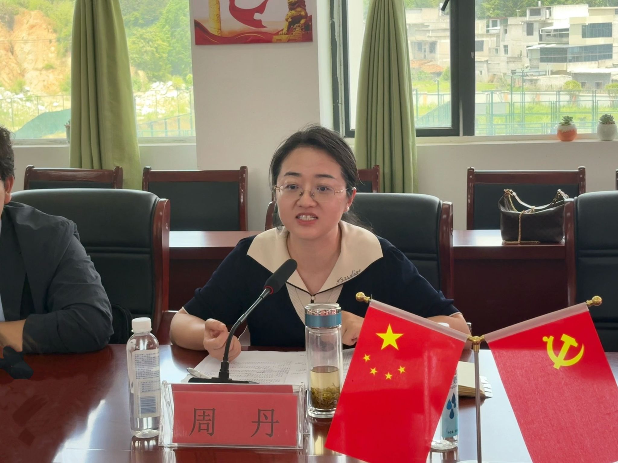 党委副书记周丹讲话,她指出,从支教志愿者李帅辰与同学们同吃同住的365个日夜,到两校师生的再次相聚,这场教育接力正是立德树人根本任务的鲜活注脚,也是高校与基础教育协同育人的创新探索。周丹从“深学笃行,共育时代新人;双向奔赴,共筑育人桥梁;协同创新,共绘发展蓝图”三个方面共同交流探讨了校地协同育人的实践路径,期待通过校地共建进一步持续深化这合作模式,让青春在祖国需要的地方绽放绚丽之花。