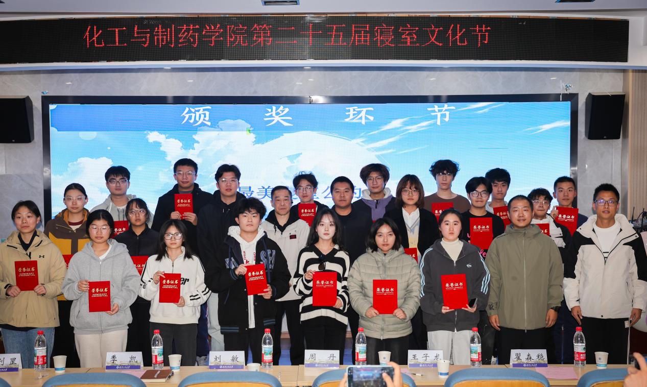 辅导员翟森稳、张列罡担任评委,现场110余名化药学子参加活动,共同见证寝室风采与榜样力量。