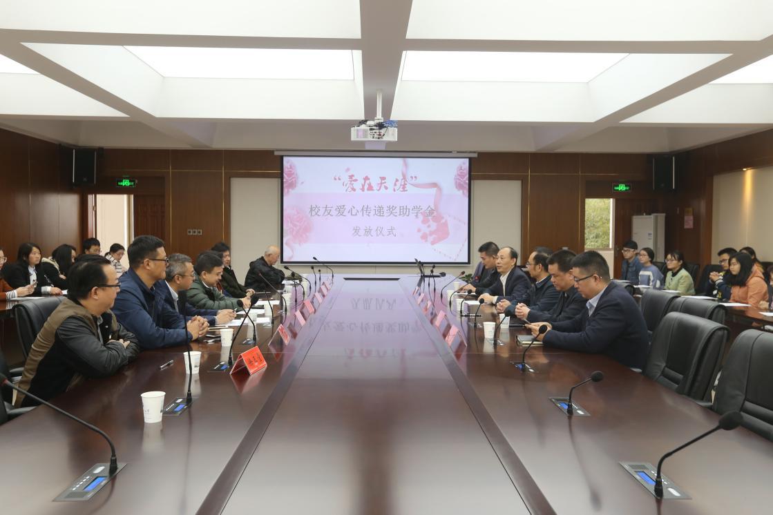 2017年“爱在天涯”校友爱心传递奖助学金评审、发放仪式在流芳校区钟楼第二会议室举行,机关党委书记陆新,校友工作处处长刘卫民,学生处副处长王涛,电影天堂