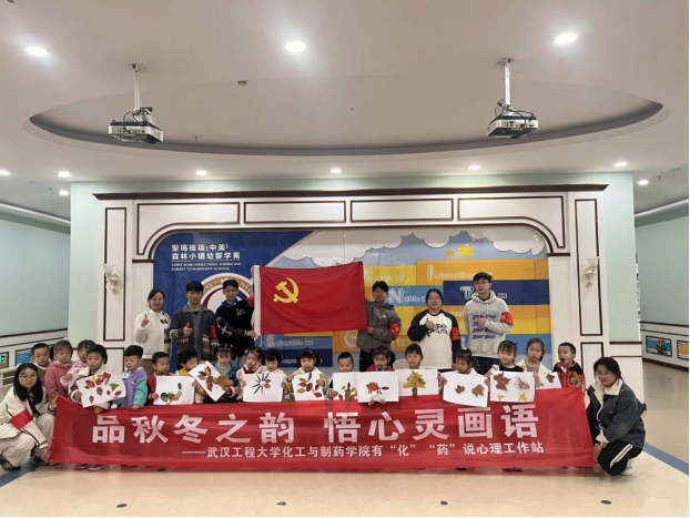 为培养同学们发现美、欣赏美、创造美,同时引导孩童们变废为宝、化腐朽为神奇,体会到环保和创作的意义所在,化药师生组织森林小镇幼儿园的小朋友们用落叶创作出一幅幅独特的树叶画。此外,学院心理工作站的同学们还对小朋友的作品进行“画语”解读,分析孩童们的内心世界、引导他们健康成长。