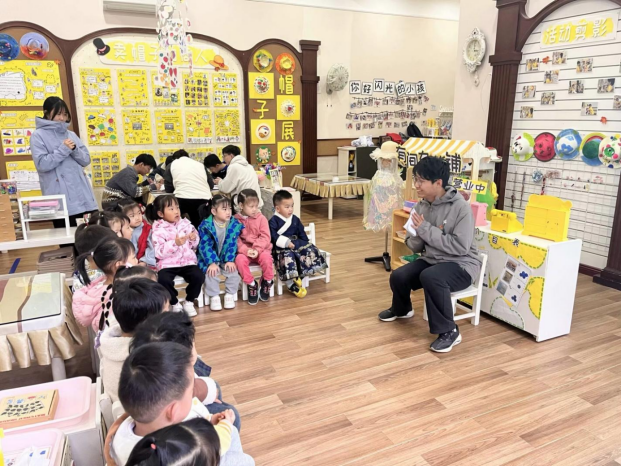 本科制药工程党支部学生代表彭进琦,结合专业知识为森林小镇的幼儿园小朋友们带来了有趣的科学用药微科普。同时,他还为小朋友们讲述了保持个人卫生,注意清洁的重要性。小朋友们在大哥哥的循循善诱下,互动频频,欢笑对答间种下了学习药学的种子。