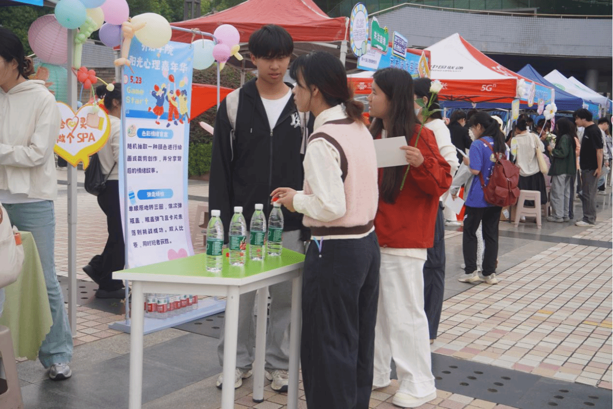 承办的“5·25阳光心理嘉年华”活动在流芳校区大礼堂广场前举行。