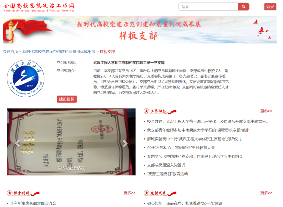 组建“石油化工研究中心”,在原有共建平台基础上,再建能源材料工程技术研究中心、高端精细化工品工程技术研究中心、生物质节能保温材料工程技术研究中心三个共建平台,支部工作成果显著。