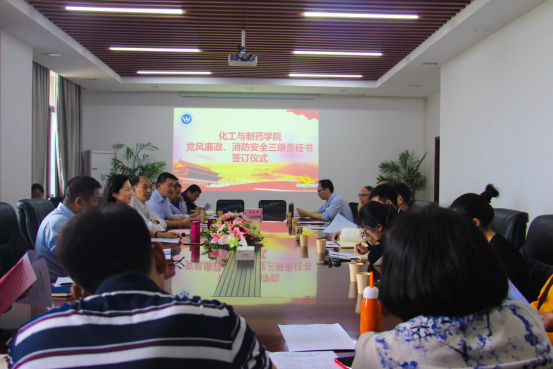 学院党委书记王雪梅、院长喻发全与三级单位代表化学工程系主任闫志国、化工第二支部书记余响林签订党风廉政建设责任书。
