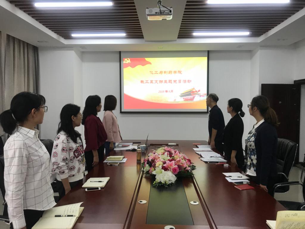在学习环节,广大党员佩戴党徽,在党旗引领下,完成缴纳党费、奏唱国歌、重温入党誓词、诵读《党章》等规定动作后,各支部采取党员主题发言、轮流讲授微党课,集体观看视频,围绕主题学习讨论等多种形式开展党员主题党日活动,重点学习了习近平总书记视察湖北重要讲话精神、习近平总书记在全国宣传思想工作会议和全国组织工作会议上的讲话精神以及新时代全国高校本科教育工作会议精神和学校2018年暑期中层干部会议精神。