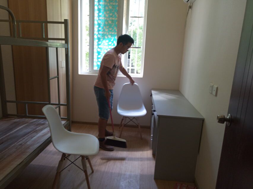 9月4日上午,党建工作中心全体成员、60-61期积极分子全员参与,对青年公寓里的新生宿舍逐一打扫,整理床铺,擦拭桌椅、检查配套衣柜设施、清扫室内灰尘纸屑。经过长达两个小时的打扫,学生宿舍焕然一新。当天下午,众多校领导检查青年公寓,对电影天堂
