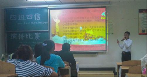 在决赛过程中,参赛选手一律采用脱稿方式并配合PPT演讲,十七名演讲者从不同角度,阐述了什么是“四进四信”,为什么要开展“四进四信活动”进支部,并引经据典,用鲜活的事例宣扬习近平总书记系列重要讲话精神“进支部、进社团、进网络、进团课”能帮助广大青年学生和高校团学干部进一步牢固树立对党的科学理论的信仰、坚定走中国特色社会主义道路实现“中国梦”的信念、增强对党和政府的信任、增进对以习近平同志为总书记的党中央的信赖。选手们慷慨激昂的演讲,加深了青少年对“四进四信”精神的理解,将“四进四信”精神传递给在场的所有观众并不断弘扬。