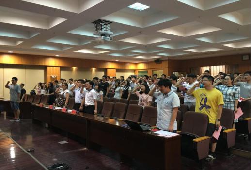 会议开始,王荷花老师简要传达了会议精神,通报了党员的到会情况。紧接着,在学生支部书记武磊同志的带领下,全体党员面对党旗,举起右手,庄严宣誓,同时宣读党章中有关党员的权利与义务。