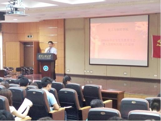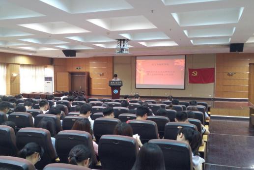 在武昌校区三教多功能报告厅召开2016届毕业生党员教育大会暨入党材料转移说明。活动主题旨在教育毕业生党员在今后的学习生活中坚定理想,争当表率,并就毕业生党员材料转移工作进行了详细说明。出席本次会议的有:学院党委副书记田勇老师,2012级辅导员周磊老师,党务负责人朱雪洁老师,会议由王荷花老师主持。