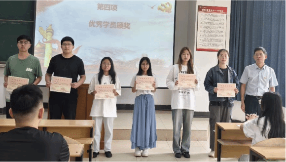 第13期发展对象优秀学员代表研2021级化学工艺02班钟彩铃分享了她在党课培训班中的收获和感悟,她呼吁广大学员要不断坚定理想信念、抓住机遇挑战、刻苦专研学习,奋力在新时代绘就壮阔蓝图。第15期发展对象代表2022级化学工程与工艺(中外合作)02班茹奕迪、第73期入党积极代表2023级化工五班付佶作为本期培训班学员代表发出倡议,要秉持初心,上好每一堂党课;保持恒心,做好每一件小事;献出真心,服务好每一位群众,为党的伟大事业时刻准备着,用同学们的千万青春为党、为祖国、为人民的蓬勃发展汇聚磅礴伟力。