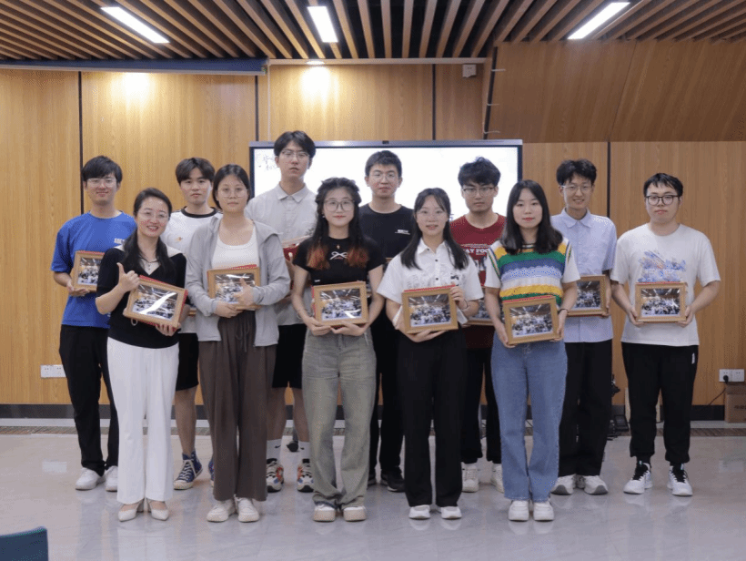 党支部书记周丹向毕业生党员赠送毕业纪念礼品,一本印有支部logo和支部书记亲笔写下祝福语的笔记本以及一张支部“全家福”,承载着支部对毕业生党员的深深祝福。