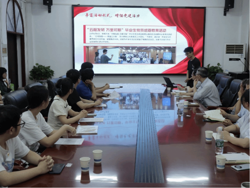 本科药卓党支部3位毕业生党员代表分别作交流发言。曾任支部副书记的陈泽旭分享了在工大四年成长心路历程,回顾了在支部工作经历。他说道:“每当遇到困惑和挑战,我都会想起党组织的期望与嘱托,党员要发挥先锋模范带头作用,它们是我前进的动力,也是我克服困难的勇气。”赵慧宇回望大学四年在党支部参加的丰富活动,极大地提升了每一位党员的积极性、主动性和创造性。她倡议每一位同学在毕业后都能够带着 “格物明理,致知笃行”的工大校训再次出发。单梦达表示在党组织的关怀与栽培下,他的思想上得到了很大的提升,逐渐成长为一名合格的党员。每一次党课学习,每一次志愿服务,每一次党日活动,都更加坚定了自己的信仰和追求。