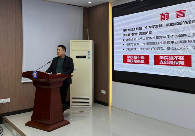 校党委组织部谭明武以《加强基层党组织建设,筑牢坚强战斗堡垒》为题,从制度保障、组织体系构建、党建“双创”、党员队伍建设及组织生活规范化等多个维度,进行了全面而深入的阐述。他结合自身丰富的党务实践经历,通过生动剖析实际案例,为支部书记清晰地梳理了工作框架和思路。培训内容不仅紧密贴合工作实际,而且极具导向性和实用性,为支部书记们提供了宝贵的理论指导和实践指引。