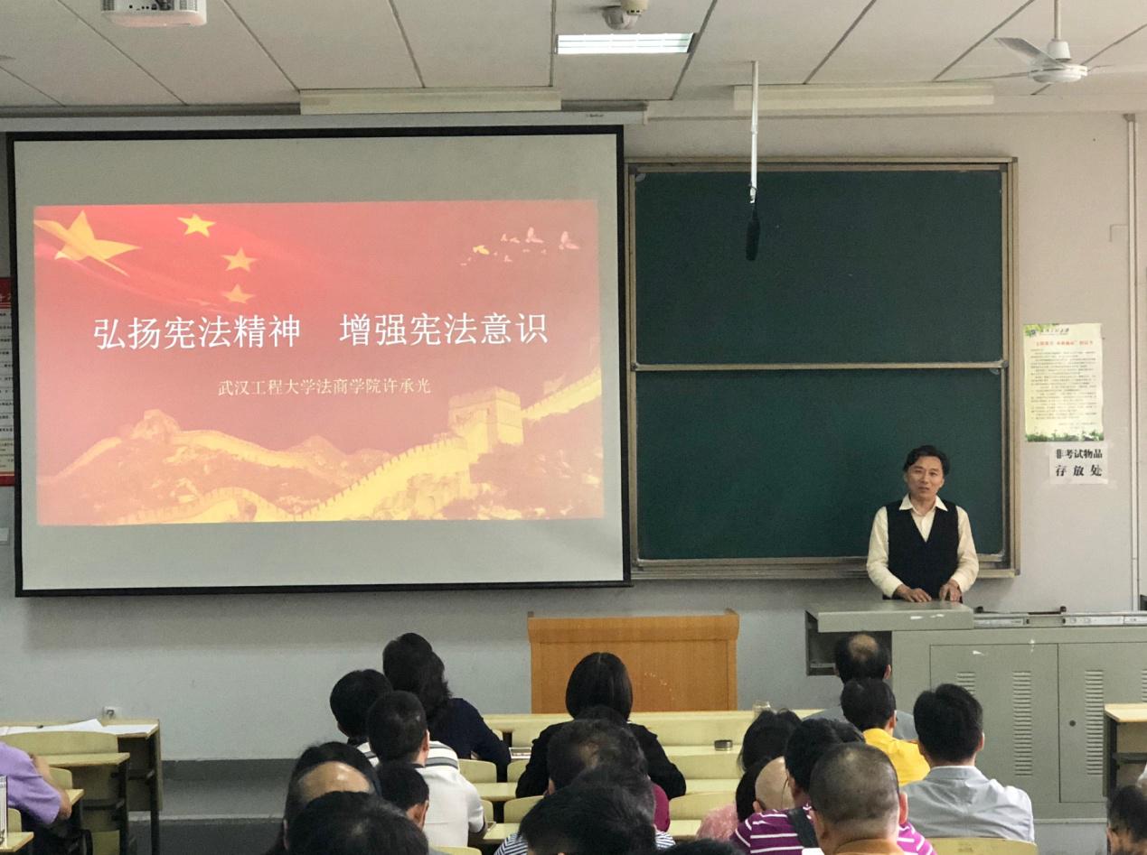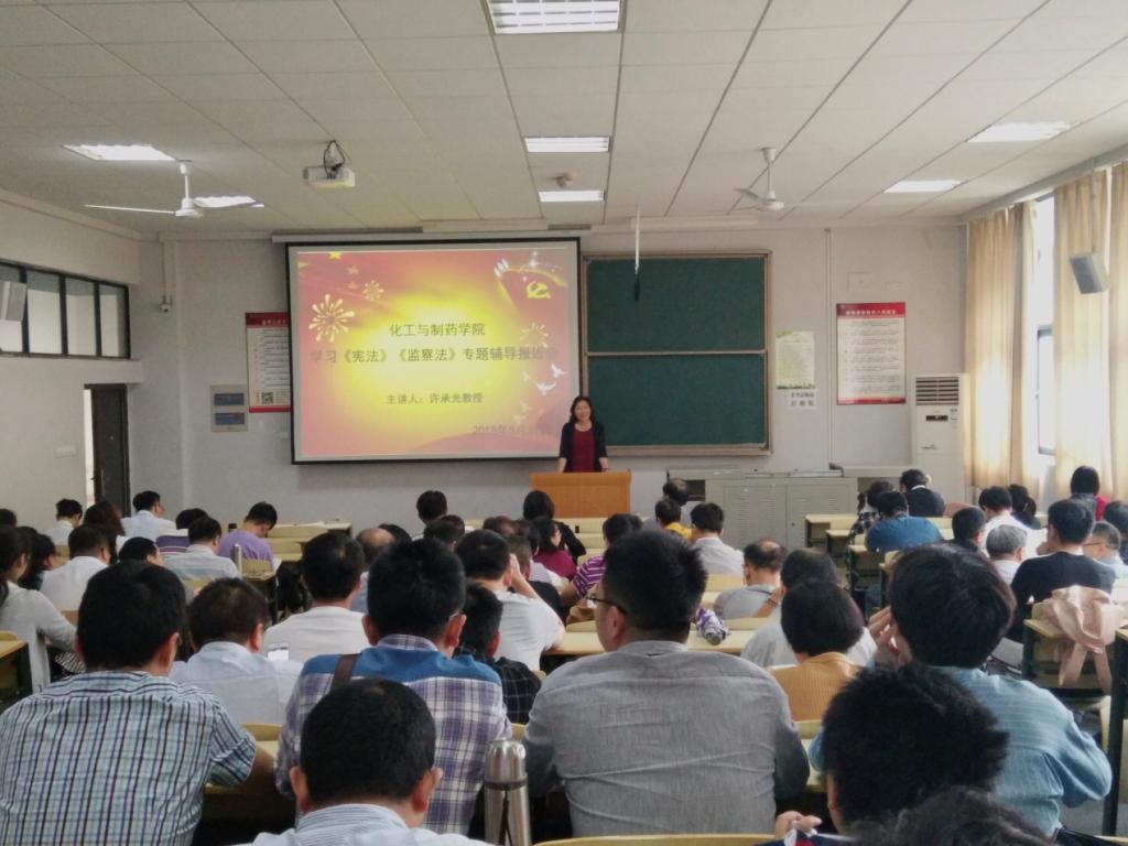 学习《宪法》《监察法》专题辅导报告会在流芳校区4201教室举行,会议邀请法商学院许承光教授做专题辅导报告,全院教职工和各学生党支部支委会成员参加了会议。