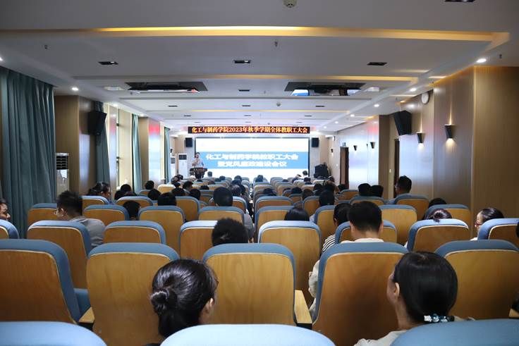 在流芳校区大化工楼1号楼610报告厅召开新学期全体教职工大会。学院院长易群主持会议。学院全体教职工参加会议。