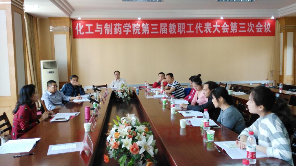 在武昌校区科教大楼九楼会议室召开第三届教代会第三次会议。校工会常务副主席严乐、兄弟学院化学与环境工程学院分工会主席袁华出席了会议,会议由学院副院长田琦峰主持。学院第三届教代会正式代表、学生代表和特邀代表共58人参加了会议。