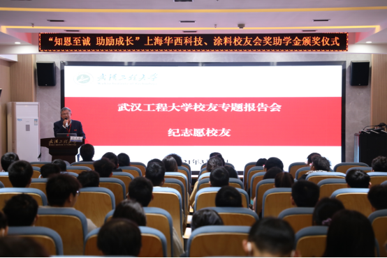 报告环节中,纪志愿校友分享了自身求学经历、创业故事、行业发展、设立奖学金的初衷和对母校的感恩之情,为同学讲述一堂生动的专业认同、行业认知教育课,提高学生对专业深入认识,希望工大学子不受家庭经济负担等因素影响,能专心完成学业,珍惜时光,努力汲取知识,释放光彩。