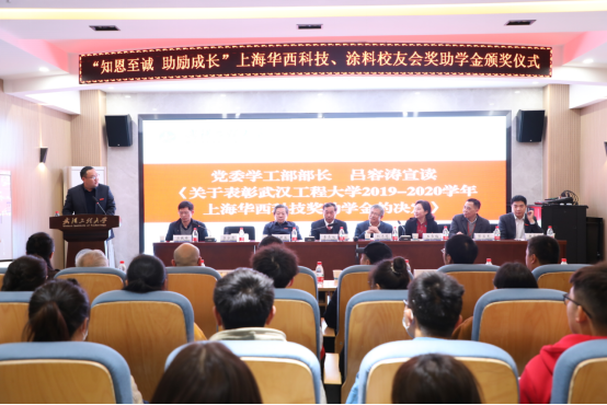 上海华西科技、涂料校友会奖助学金颁发仪式在流芳校区化工大楼610报告厅举行。校党委副书记李志旭,校友代表彭昌军、纪志愿、何明益、尚勇全、王崇武、胡晓光、陶醉,党委学生工作部、校友工作处、电影天堂