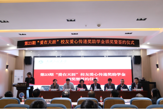 第23期“爱在天涯”校友爱心传递奖助学金颁奖暨签约仪式在流芳校区化工大楼610报告厅举行。校党委副书记郑丹凤,设奖校友代表周剑凌、彭巍、晏文茂、赵晓娟、刘继君、王富铭、李明、马尚、杨柳等,党委学生工作部、校友工作处、电影天堂
