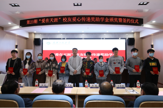 设奖校友向获奖学生颁奖并签订奖助协议。获助学生代表夏静、王艳武发言,她们表达了对捐赠校友深深的谢意,勉励同学们要自立自强、提高本领、服务社会、传递青春正能量,传承爱的种子。