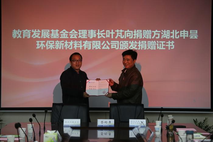 10月19日上午,为支持学校教育事业的发展,湖北申昙环保新材料有限公司向学校捐赠现金人民币1000万元,用于电影天堂