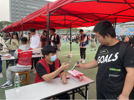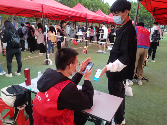 再次组织15名党员教师下沉核酸检测扫码采样,40余名学生参与现场志愿服务工作,维护现场秩序,充分发挥先锋模范作用,协助学校做好全员核酸检测工作。