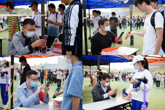 “请还未进行核酸检测的同学们,尽快前往核酸采样点进行检测,谢谢配合!”“请您佩戴好口罩,在一米线标记处有序排队……”核酸检测现场,许志伟志愿服务队的同学们始终坚守岗位,在现场,他们化身“宣传员”“督导员”,现场维护检测点秩序,叮嘱师生提高防范意识,做好自我防护,用担当构筑起抗击疫情的严密防线。