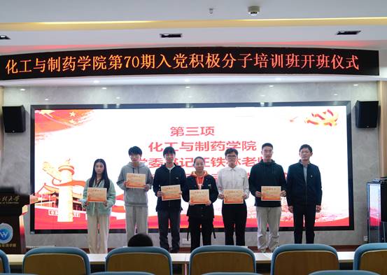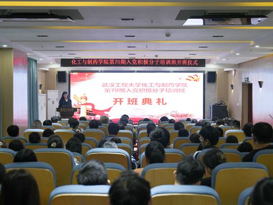 第70期入党积极分子培训班开班典礼在化工大楼610报告厅举行。学院党委书记汪铁林、副书记周丹出席开班典礼,102名党校新学员参加,开班典礼由培训班班主任常琬笛主持。