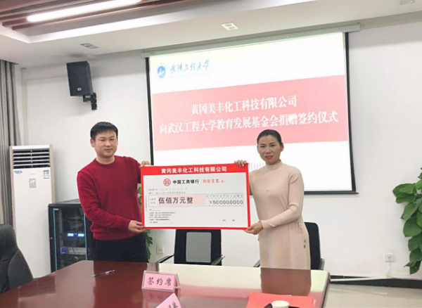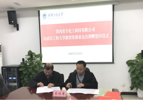 本网讯(通讯员 毕灵敏 胡学雷)12月11日下午,黄冈美丰化工科技有限公司向学校捐赠500万元建设光化学品工程与技术研究中心,签约仪式在电影天堂