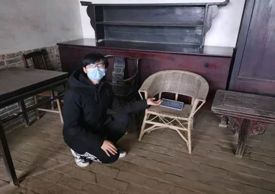 图为化药学子陈泽旭在唐山市李大钊故居进行讲解