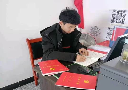 图为化药学子何镜霖在红安县上新集镇党支部开展政务工作