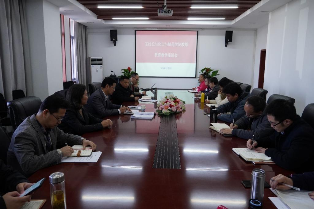 ,就教育教学工作与化药院系主任、教研室主任、课程负责人、工程认证骨干教师等进行了亲切座谈交流。学院党委书记王雪梅、副院长金放、龙思会和闫志国同志参加了会议。