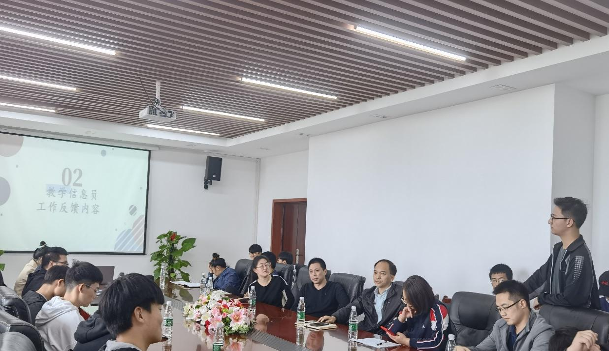 随后金院长就如何加强师生交流和信息中心建设进行了发言。他对分中心的内部改革提出表扬,肯定了开学至今的工作成果,并表示期望各位信息员端正工作态度,积极反馈教学环节中存在的问题,将在学院设置分中心,扩大组织影响力。