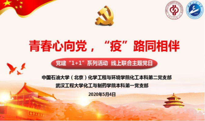 本科第一党支部与中国石油大学(北京)化学工程与环境学院化工本科第二党支部相聚云端,共同开展党建“1+1”——“青春心向党,‘疫’路同相伴”线上联合主题党日活动,通过学理论、观影片、讲故事、道真情、唱国歌等多种形式纪念五四运动101周年,共悟爱国之情,同述爱国之心。