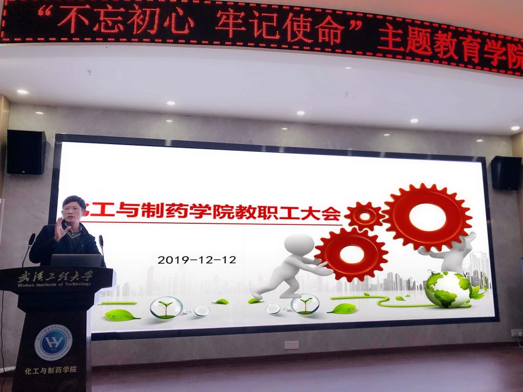 汪铁林对学院2019年学科建设、研究生教育、科研情况、师资队伍建设取得的成果和存在的问题进行了分析和总结,传达了学校绩效工资改革方案精神,同时,对学院2020年重点工作提出具体要求。汪铁林指出,全院师生员工要始终围绕学院“打造一流学科、汇聚领军人才、产出重大成果、培育精英学子”的办学理念,凝聚集体力量,勤练内功、夯实基础,以实干展现化药人新作为。