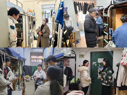 学院领导带领辅导员和班主任深入学生宿舍走访,向同学们带去新学期的问候。走访中,老师们亲切询问同学们的身体健康状况、生活适应情况、考研情况等,了解学生的所思所想所难,并希望同学们尽快调整作息规律,保持宿舍内的良好卫生,以更加积极饱满的状态投入到新学期的学习生活中去。